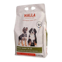 Junior är ett vetefritt helfoder som passar både till valpar och unghundar, samt dräktiga/ digivande tikar. Junior har ett högt innehåll av protein från animaliska och marina råvaror och innehåller bl a krill som ger hunden ett naturligt tillskott av omega 3 fettsyrorna EPA och DHA. Det är tillverkat av svenska och svenskkontrollerade råvaror och innehåller inga konstgjorda smak- eller färgämnen. Junior innehåller även FOS som är en naturlig prebiotika som främjar tarmhälsan.