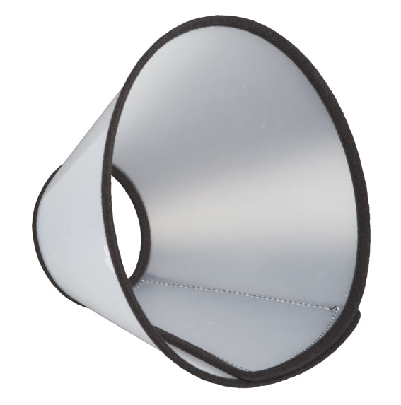 Genomskinlig krage i plast med kardborreband och fållade kanter som gör den bekväm att bära och skyddar möbler och väggar från att skadas. Hindrar husdjuret från att slicka/tugga på sår eller bandage.