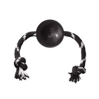 Extreme KONG Ball with Rope ger långvarig mångfald till spel med apport och ryck. Tillverkad av KONG Extreme gummi, bollen är designad för hållbarhet för långvarig interaktiv lek. Repet av 100 % bomull belönar också lämpligt tuggbeteende samtidigt som det masserar tänder och tandkött. Allt detta leder till lekfulla anfall av mentalt stimulerande och berikande engagemang.