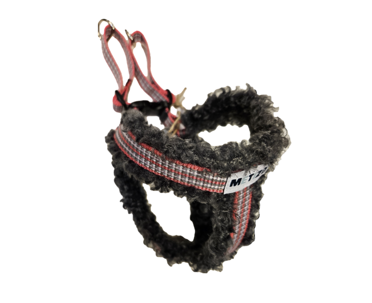 En sele som heter MetizoEazy med knäppe, den är väldigt enkel att sätta på hunden, katten eller djuret du vill använda den till.