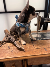 En sele som heter MetizoEazy med knäppe, den är väldigt enkel att sätta på hunden, katten eller djuret du vill använda den till.