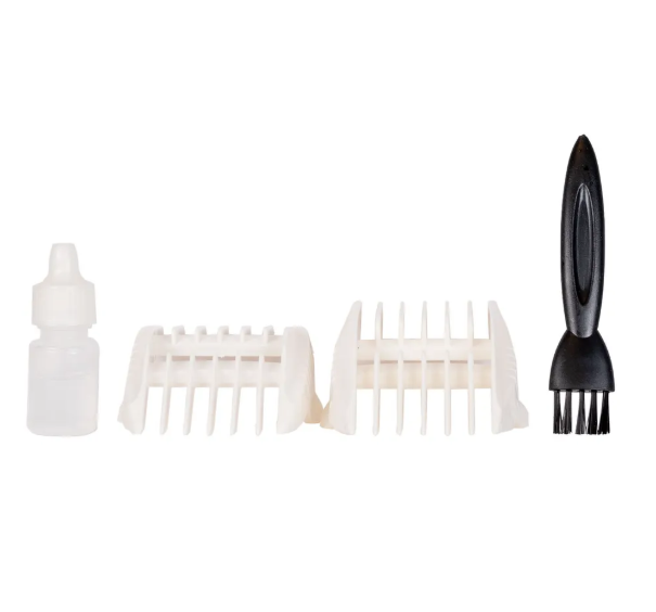 Liten och smidig klippmaskin perfekt för små hundar. Idealisk för helklippning samt trimning av tassar och nos. Inkluderar två dubbla plastdistanser med längderna 3, 6, 9 och 12 mm. För enkel rengöring medföljer rengöringsborste och olja. Skärbredden är 3,8 cm. Batterier ingår ej.