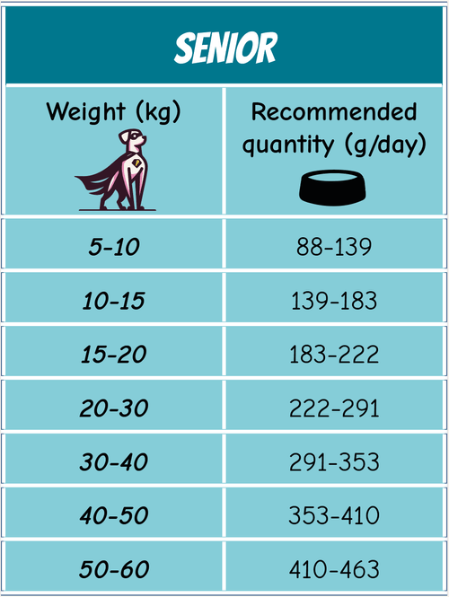 Pow! Dog Senior torrfoder är till för tiden när våra hundar når sina gyllene år förtjänar de en kost som kan hålla dem lika vitala som när de var yngre. Vårt torrfoder för seniorer är speciellt utformat för att stödja och bevara deras naturliga försvar och rörlighet. Med noggrant utvalda ingredienser som arbetar i harmoni för att stärka och bevara deras superkrafter, säkerställer detta foder att din seniora hjälte fortsätter att trivas. Varje portion av torrfodret är packad med näring som är anpassad för att stärka tändernas hälsa och kämpa mot tandbeläggning och tandsten. Det stärker även det naturliga försvaret genom en riklig blandning av vitaminer, mineraler och antioxidanter från frukter och örter, medan noggrant balanserade nivåer av fettsyror ser till att din hunds hud förblir sund och pälsen blank.