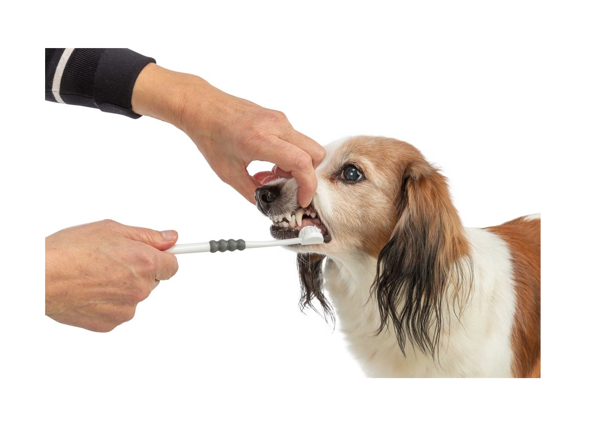 Trixie - Tandborste tresidig, hund/katt, 18 cm, vit/grå