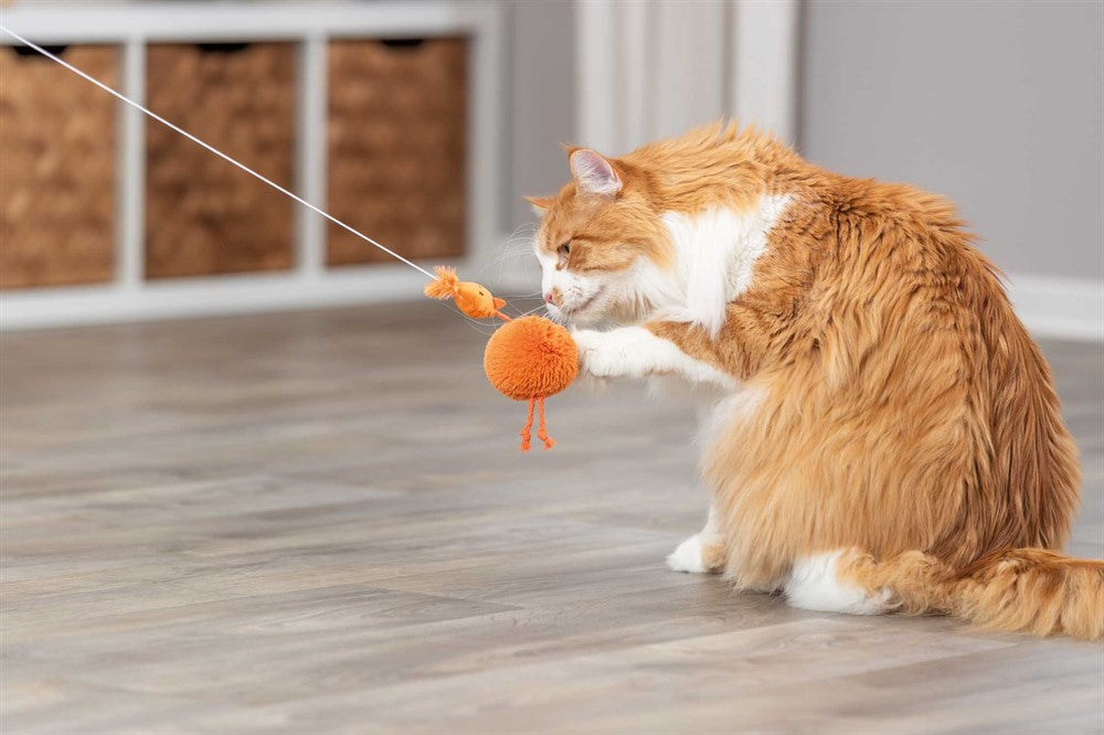 Trixie - Kattleksak Plyschkyckling på elastiskt band 20 cm