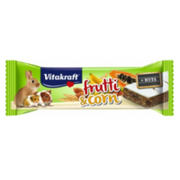 Smaskig smådjurssandwich med frukt och majs – ett läckert Tuttifrutti-snack som passar kaniner, marsvin, hamstrar och andra gnagare som älskar godis. Vitakraft Frutti + Corn är det perfekta mellanmålet för smådjur!